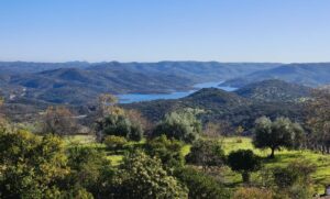 Ésta pista da a la otra vertiente de Zufre con bonitas vistas al norte. El paisaje cambia un poco apareciendo olivares en el terreno más abrupto y alternando las grandes dehesas con fincas más pequeñas de olivos.