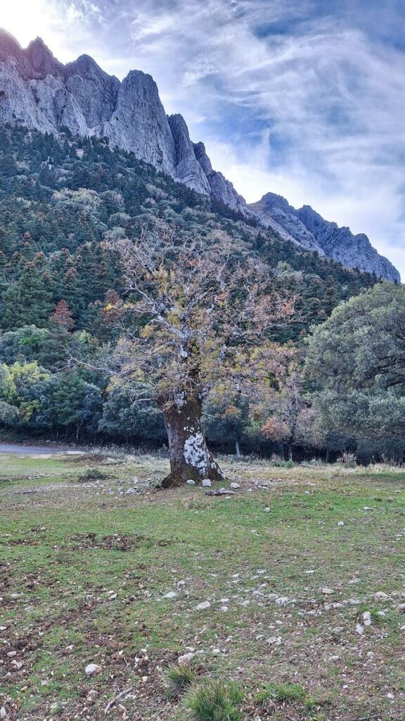 Llegamos a Los Llanos de los Vientos, una zona de descanso ideal para reponer fuerzas. Aquí domina ya el bosque mediterráneo húmedo de quejigos y encinas.