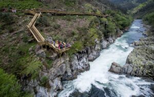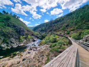 Las Pasarelas del Paiva una ruta de senderismo de 9 km a lo largo de pasarelas de madera en la margen izquierda del río Paiva, mientras que el Puente 516 Arouca es un puente peatonal colgante de 516 metros de largo que cruza el cañón del río. La entrada que llevareis incluidaa ambas son obligatoria para cruzar el puente e incluye el acceso a las pasarelas. El recorrido se puede combinar, pero hay que tener en cuenta la logística de acceder al puente y la ruta de las pasarelas, ya que son un par de experiencias naturales distintas y impresionantes.