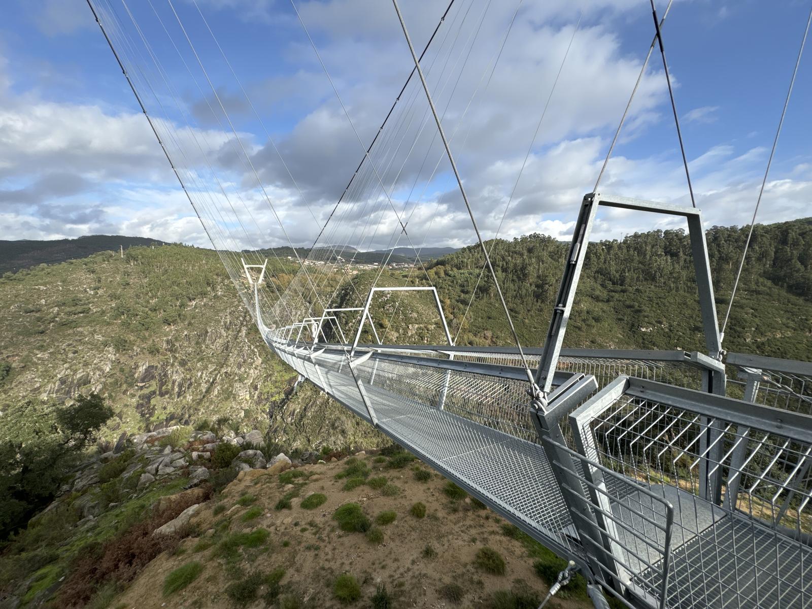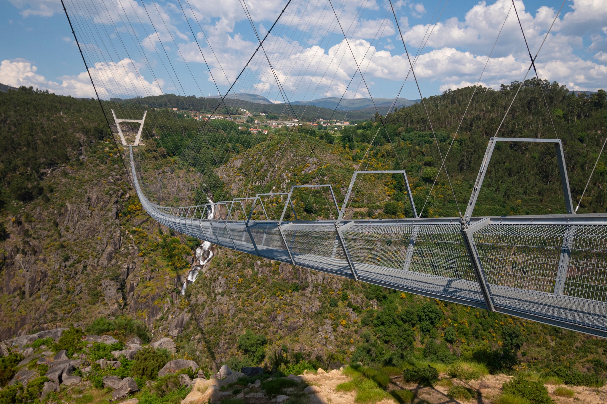 El puente 516 Arouca es el puente colgante peatonal más largo del mundo y está ubicado en Arouca, en el distrito de Aveiro, Portugal. Con 516 metros de longitud y una elevación de 175 metros, conecta las orillas del río Paiva. Al cruzar el puente, tendrá una vista impresionante de Garganta do Paiva y Cascata das Aguieiras, ambos geositios del territorio del Geoparque Arouca de la UNESCO.Puente 516 Arouca se encuentra en Arouca, junto a los famosos Passadiços do Paiva.
