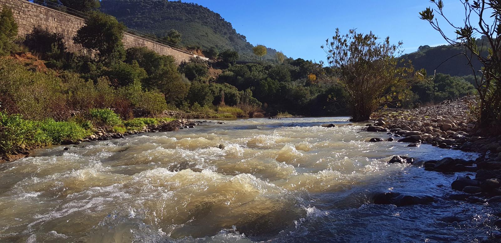 Seguimos por el Sendero hacia el Oeste, hasta un antiguo azud abandonado o pequeño dique de contención para represar el agua antes de la construcción del Pantano de Zahara. Este azud con aliviadero nos permite acercarnos al río y disfrutar de bellas imágenes.