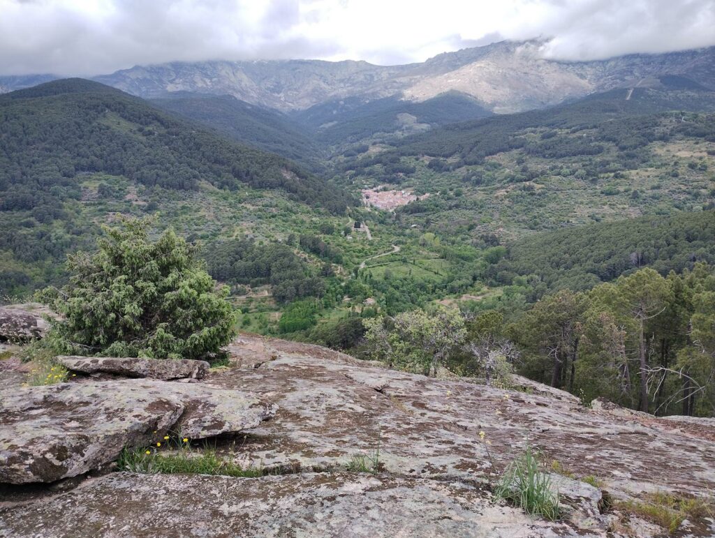 A lo largo del camino, tenemos unas espléndidas vistas de los castaños, robles y cerezos que pueblan el valle y que, en esta época del año, están impresionantes con los colores de primavera, ambientados entre los prados verdes y los pinares que por la zona abundan, ayudando a realzar el contraste del paisaje. Al fondo, en una parte del sendero, sobresale la figura del Risco de las Morrillas o Peñita de Arenas.
